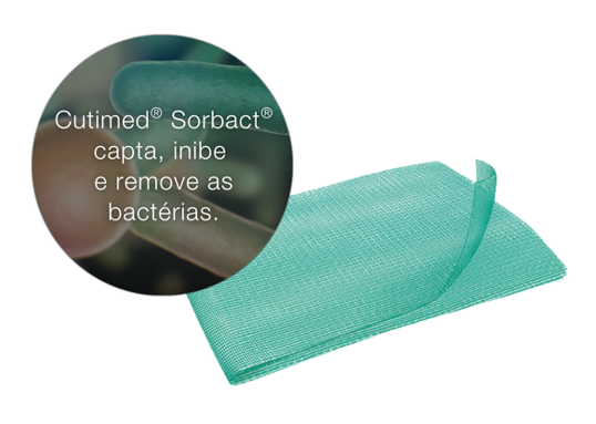 Baseado em processos naturais e interações físicas, Cutimed® Sorbact® captura as bactérias, que se aderem de forma irreversível à sua superfície, inibindo seu crescimento e sendo removidas a cada troca de curativo, o que reduz a carga biológica e favorece a cicatrização das feridas. Cutimed® Sorbact® ajuda a controlar as bactérias desde o início.