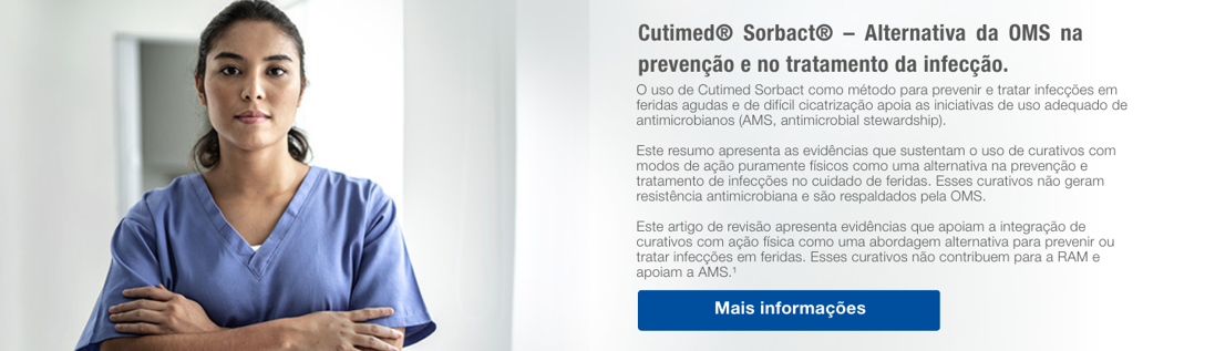 O mundo inteiro despertou para o desafio da resistência antimicrobiana (RAM). Sem ferramentas eficazes para a prevenção e o tratamento adequado das infecções, o número de pessoas cujo tratamento falha aumentará. As iniciativas da OMS para a administração adequada de antimicrobianos (AMS, antimicrobial stewardship) oferecem uma estratégia para reduzir a taxa de resistência antimicrobiana, e os curativos com Tecnologia Sorbact® são uma alternativa que forma uma parte valiosa dessa estratégia.